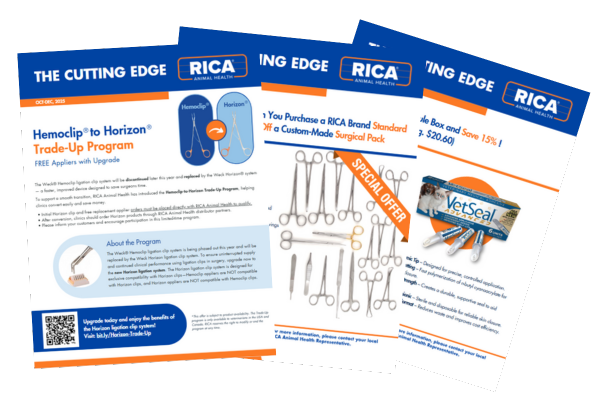 Stay up to date with the latest in veterinary care through The Cutting Edge, the quarterly newsletter from RICA Animal Health. Each issue features exclusive promotions, top product highlights, and expert insights to support excellence in animal health.